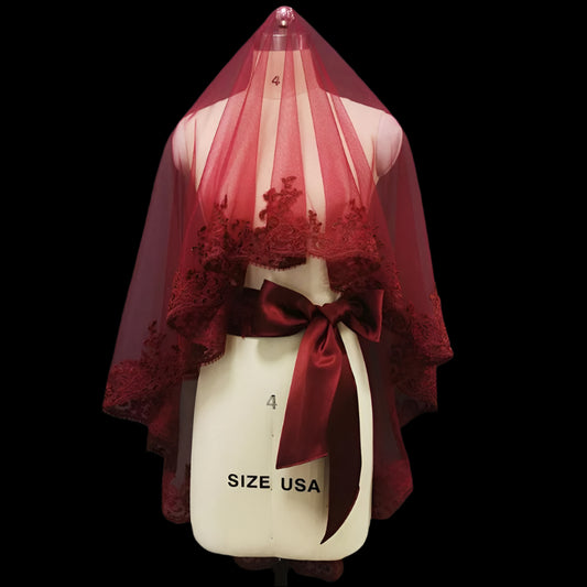 Burgundy Short-Laced Wedding Veil