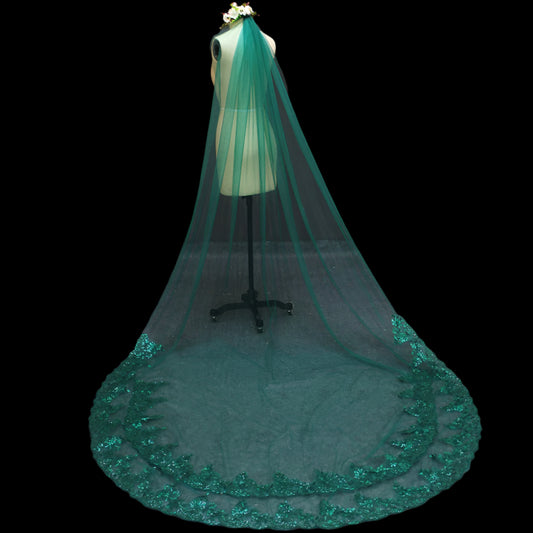 Bling Sequins Green Lace Wedding Bridal Veil